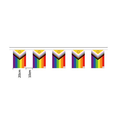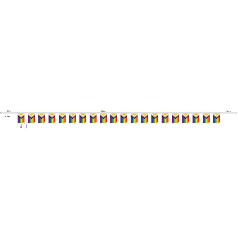 Progressivt flaggspill i høy kvalitet med hele 20 flagg per remse. Den har festebånd i sidene for enkel opphenging.